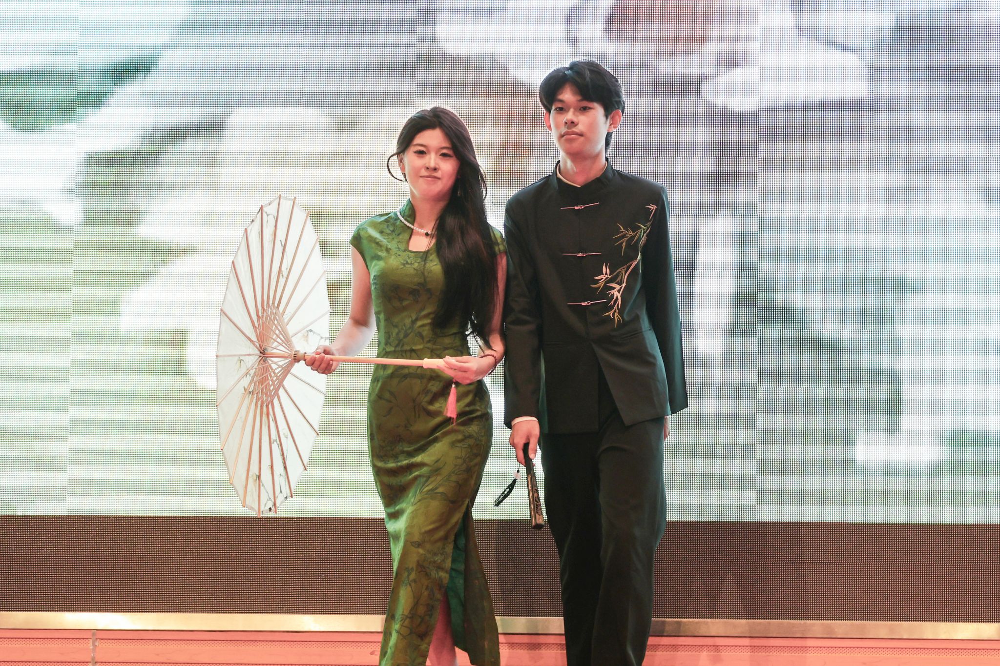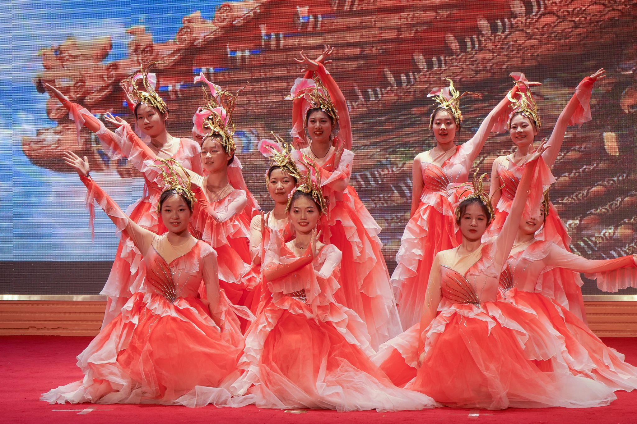晚会在大气磅礴、如诗如画的《美丽中国》中拉开序幕。整场晚会分为“赤子之心 家国情长”“青春逐梦 启航未来”“薪火相传 共筑新程”三个篇章,古典舞《一梦敦煌》以翩跹舞姿再现丝路文明的灿烂辉煌;歌曲《最美的太阳》唱出了青年一代对梦想的执着与热爱;朗诵《如愿》深情诉说几代人的家国情怀;豫剧《南阳关》选段铿锵有力,彰显传统戏曲的永恒魅力;武术《武动乾坤》刚柔并济,尽显中华武学的博大精深;歌曲串烧《故乡》《倒数》《飘向北方》《有没有一首歌会让你想起我》带我们重温感动;走秀《礼赞东方 霓裳新章》将传统服饰与现代设计完美融合,展现文化自信与青春风采;留学生歌曲串烧《想去海边》《Delbirim》《Jama》带来了跨越文化与时空的音乐对话;朗诵《潍职欢迎您》以真挚之声表达对新生的热烈欢迎。古典舞《入画江南》勾勒出水墨江南的诗意画卷;乐队演唱《蒲公英的约定》《太阳》唤起青春记忆与梦想约定;现代舞《Dance to the future》以动感节奏展现学子面向未来的蓬勃朝气。