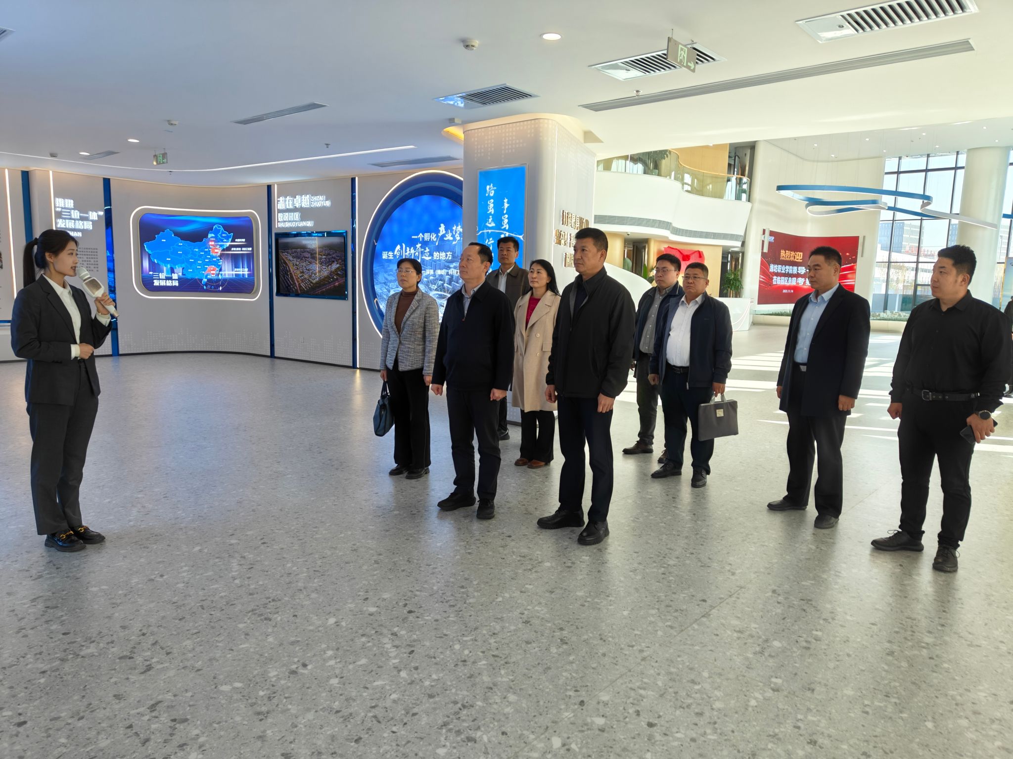 期间,王浩一行在王鹏的陪同下参观了全球招商展厅,观看了宣传片和沙盘讲解。