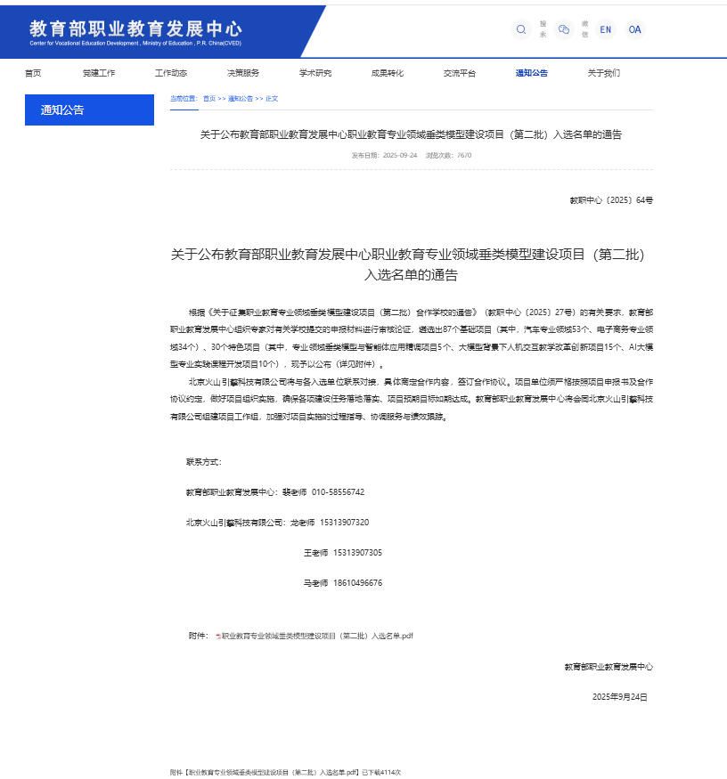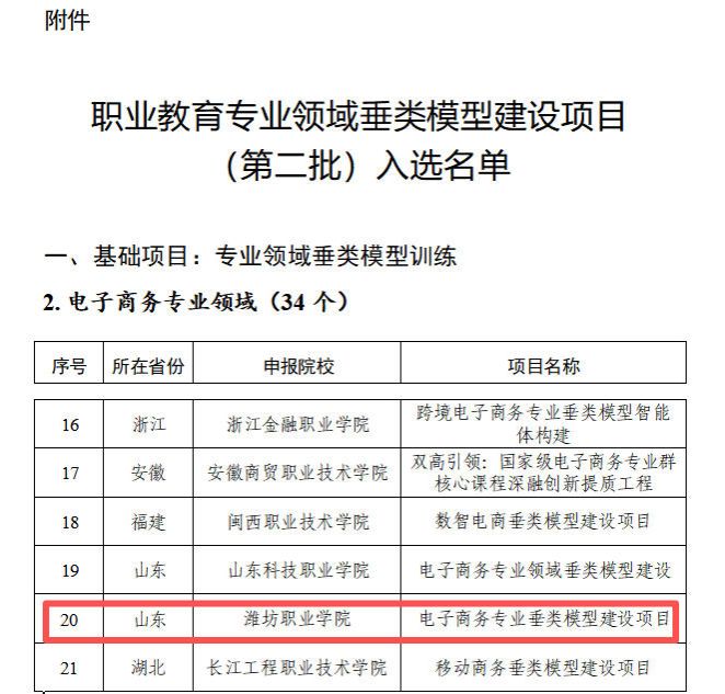 近日,教育部职业教育发展中心公布了职业教育专业领域垂类模型建设项目(第二批)入选名单,我院申报的电子商务专业垂类模型建设项目成功入选专业领域垂类模型训练基础项目。