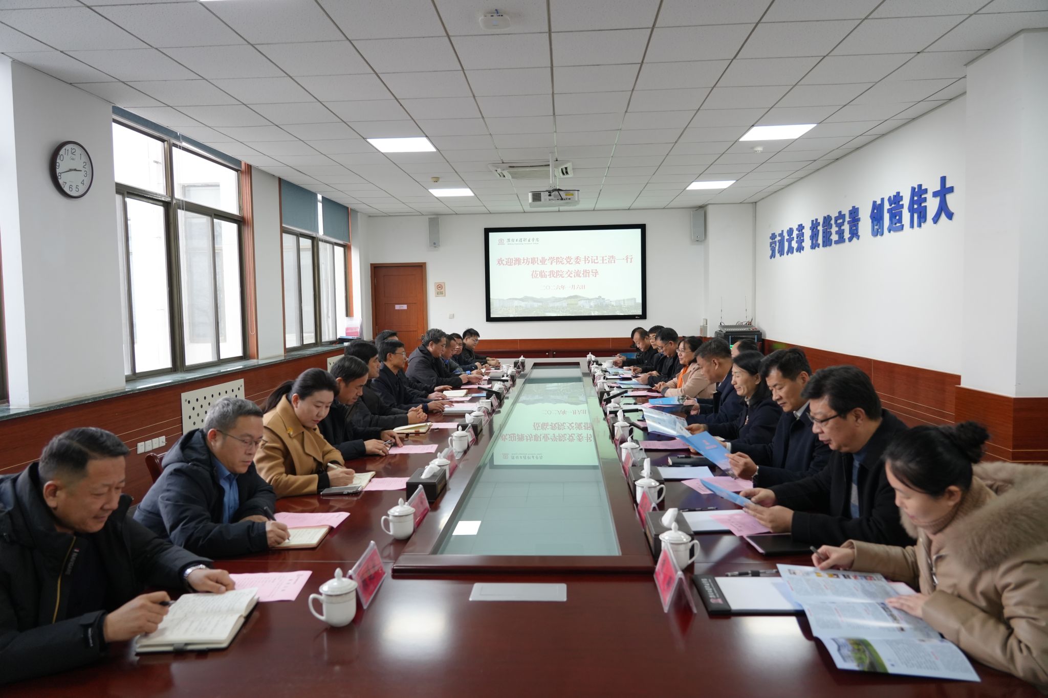 为进一步加强与青州市及驻青州市高职院校的合作,更好服务青州经济社会发展,1月6日,学院党委书记王浩、院长韩瑞东带队赴青州市及潍坊工程职业学院、潍坊护理职业学院,围绕产教融合、校地合作与校校合作开展对接交流。青州市委书记宋伟伟,市委副书记、市长田永全,潍坊工程职业学院党委书记吕尧良、院长王忠山,潍坊护理职业学院党委书记崔照忠以及相关部门负责人参加。学院党委委员高凌云和相关职能部门、二级学院负责同志参加对接活动。