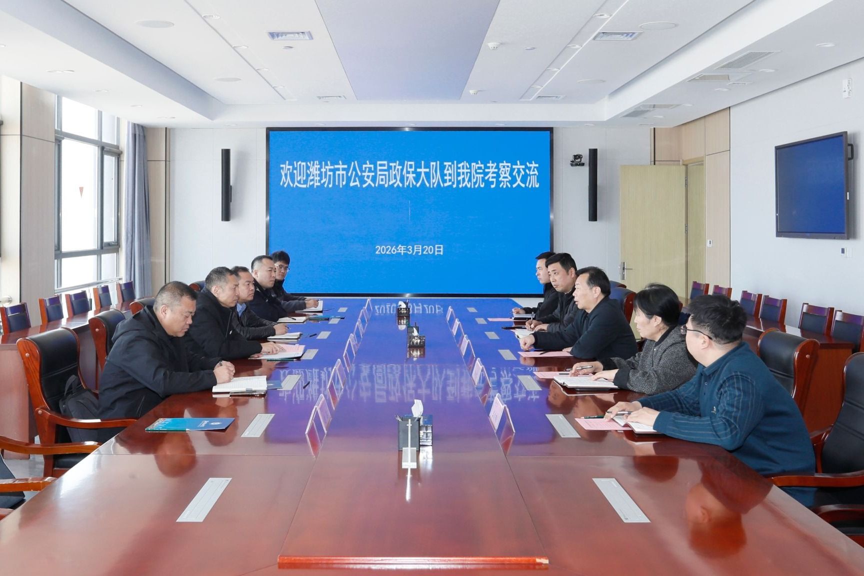 3月20日,潍坊市公安局政保支队副支队长安传武一行6人到我院调研。学院党委副书记贺志强,党委委员、宣传部部长鞠桂芹陪同调研,安全保卫处、学生工作处负责同志参加。
