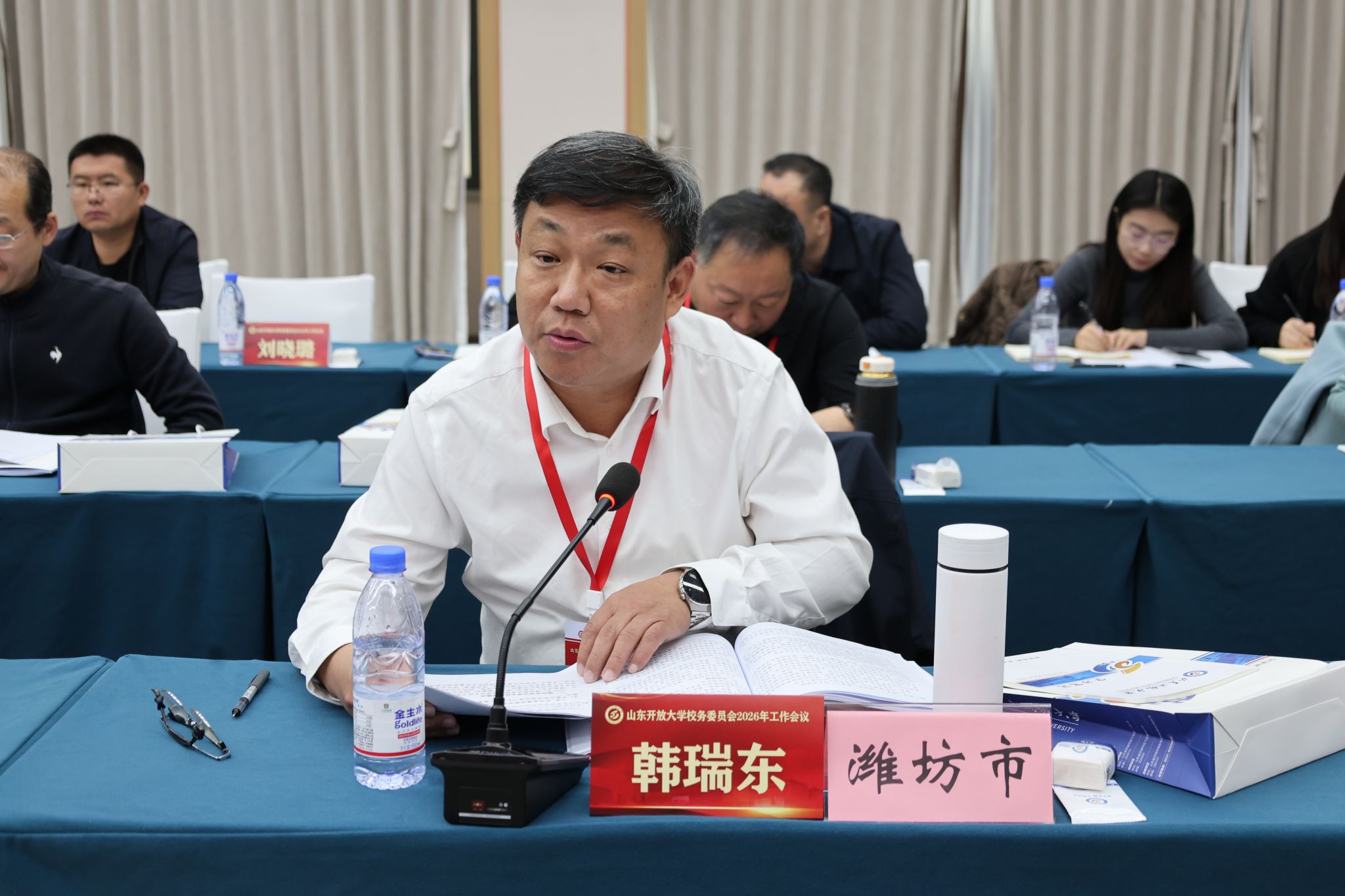付一明参加全省开放大学2026年工作会议,围绕《关于加强开放大学体系建设的指导意见(讨论稿)》《山东开放大学“深化体系建设年”工作方案(讨论稿)》《山东省社区教育机构建设指南(讨论稿)》进行工作交流,结合潍坊实际就体系建设、社区建设等提出意见建议。