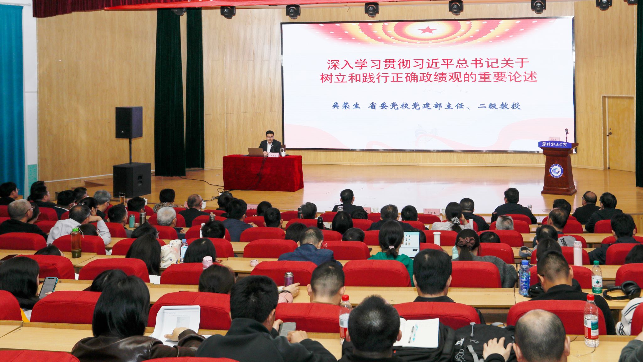 吴荣生教授从理论逻辑、历史逻辑、实践逻辑相统一的高度,系统阐释了正确政绩观的核心要义与实践要求。报告站位高远、深入浅出,既有理论厚度,又有现实针对性,为与会人员带来了一场深刻的思想洗礼。