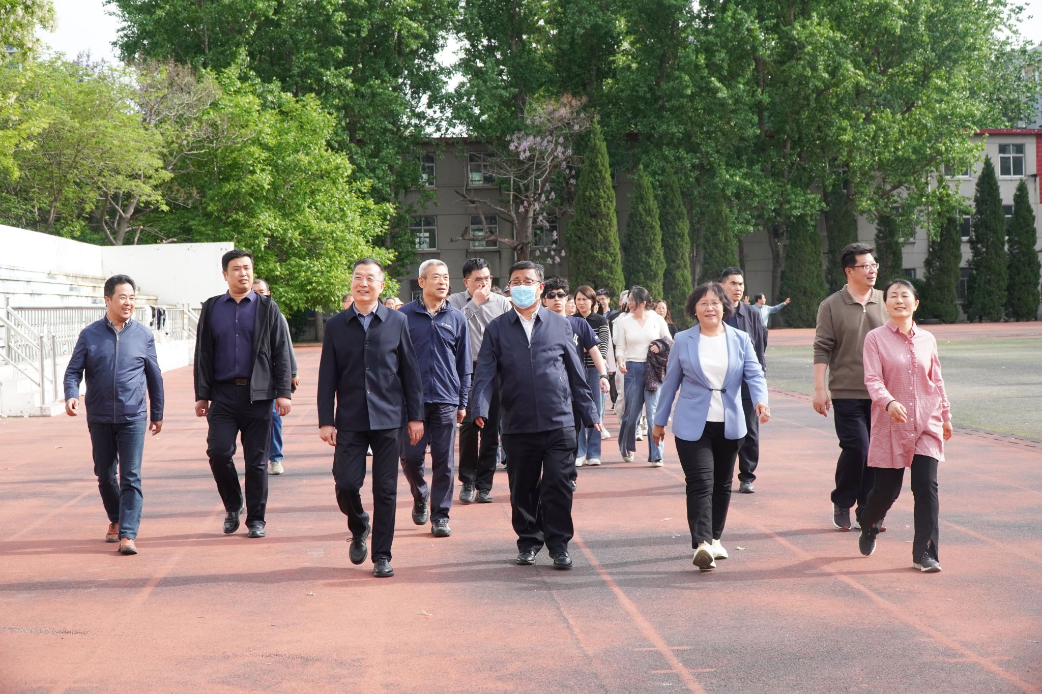 活动中,院长韩瑞东、党委副书记贺志强分别为两校区活动鸣枪发令,吹响运动奋进的号角。行进途中,大家精神抖擞、欢声笑语、步伐矫健、阔步前行,畅谈交流工作与生活,欣赏校园沿线春日美景,卸下了工作的疲惫,在轻松愉悦的氛围中感受运动的快乐,在并肩同行中拉近了彼此的距离。