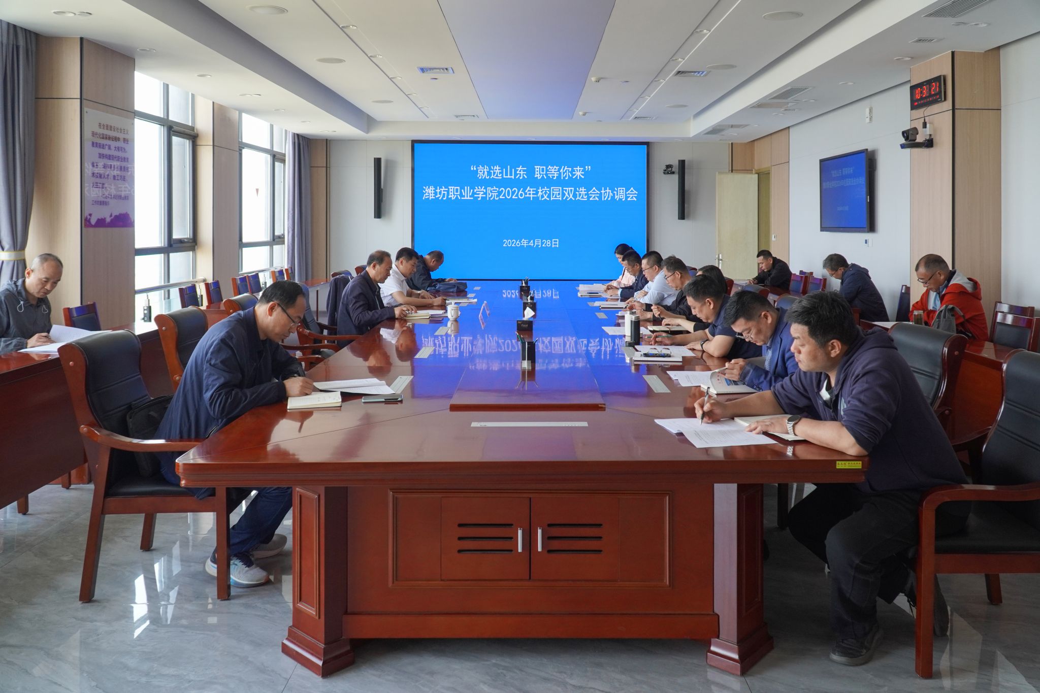 招生就业处负责人解读实施方案及筹备情况。本次双选会由山东省教育厅、省人社厅、潍坊市公共就业和人才服务中心指导,设线上招聘、现场招聘、宣讲会三大板块,设置校友企业、潍坊各县市区企业等特色展区。会议对专项工作组及二级学院分工进行细化部署,明确各项职责,形成上下联动、协同推进的工作格局。